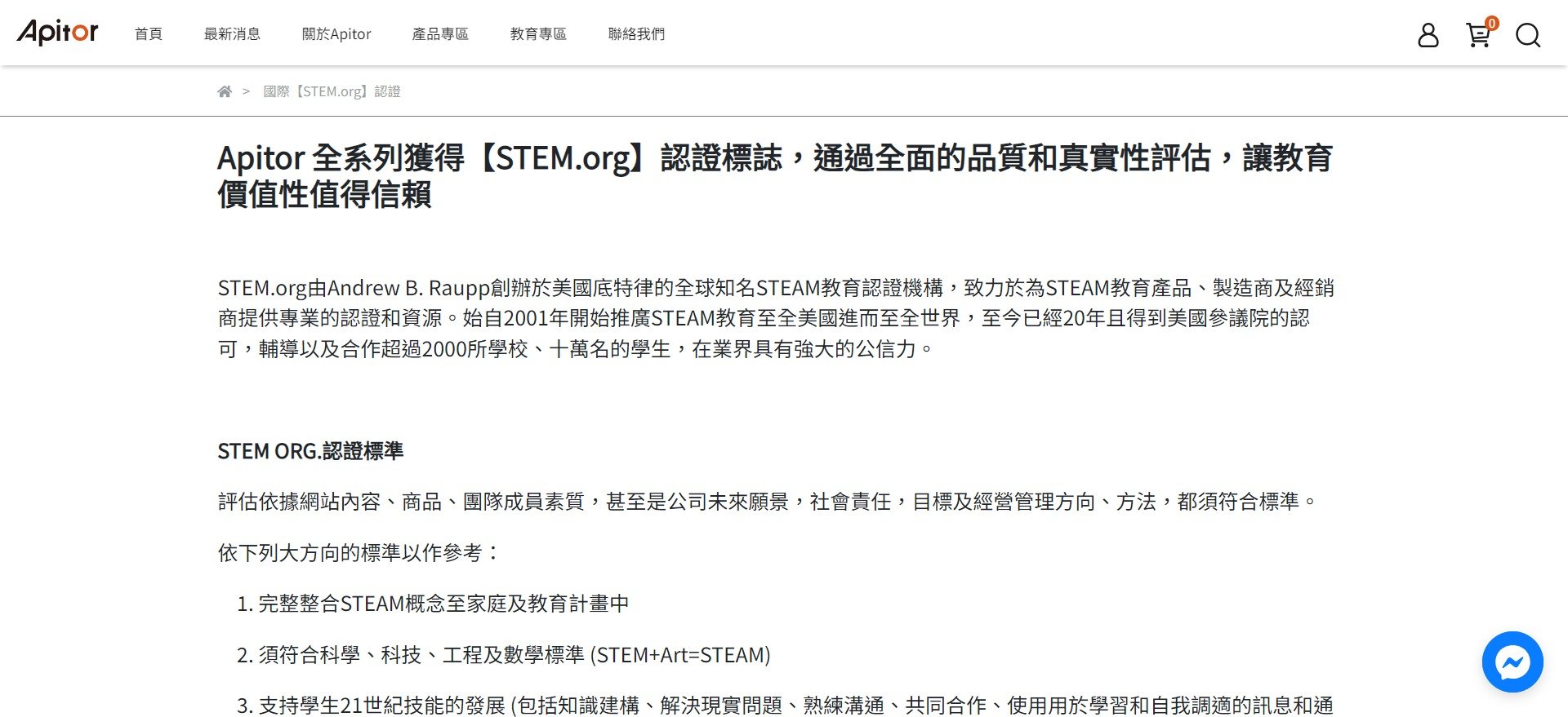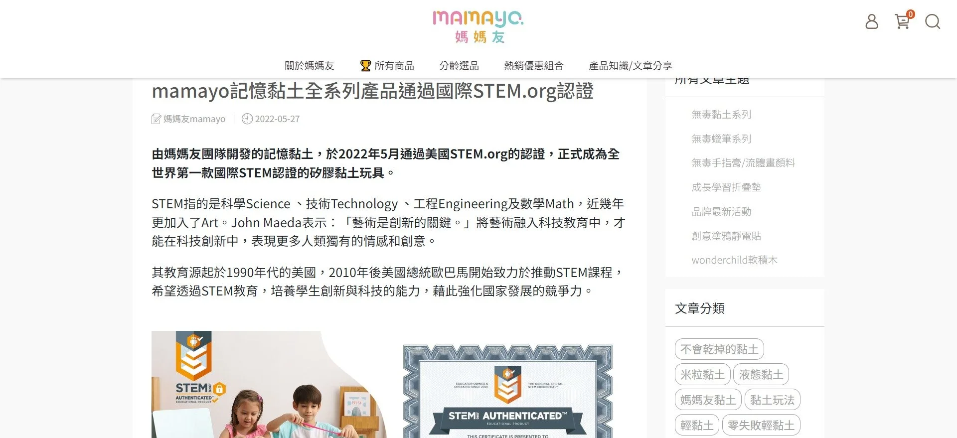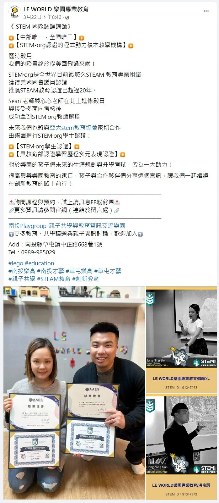 1.官方網站可撰寫文章,說明場域 / 人物 / 商品獲得STEM.org認證