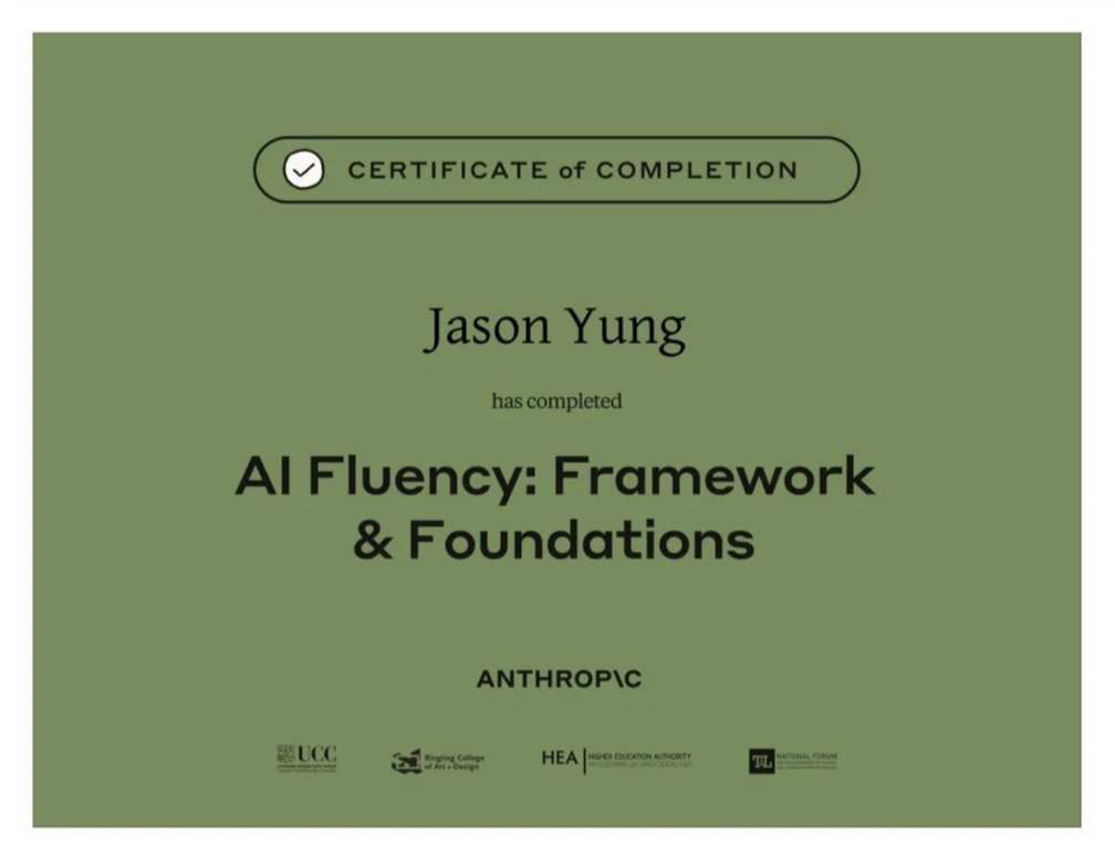 Claude教的大部分不是科技觀念,而是更偏向使用AI的心法,其中包括4D(Delegation, Description, Discernment, and Diligence.),3A(Automation,Augmentation,Agency),以及6個下prompt的技巧(Give context,Show examples,Specify constraints,Break complex tasks into steps,Ask the AI to think first, and Define the AI's role or tone)。總共花的時間1.5小時左右。能夠很明顯的感覺到,Anthorpic這間公司在要求使用AI的細節跟道德倫理上是非常要求的。
